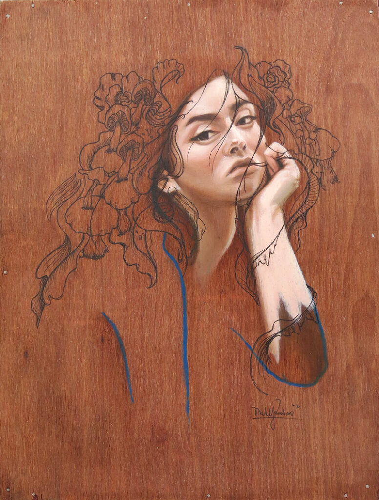 oil and ink on wood