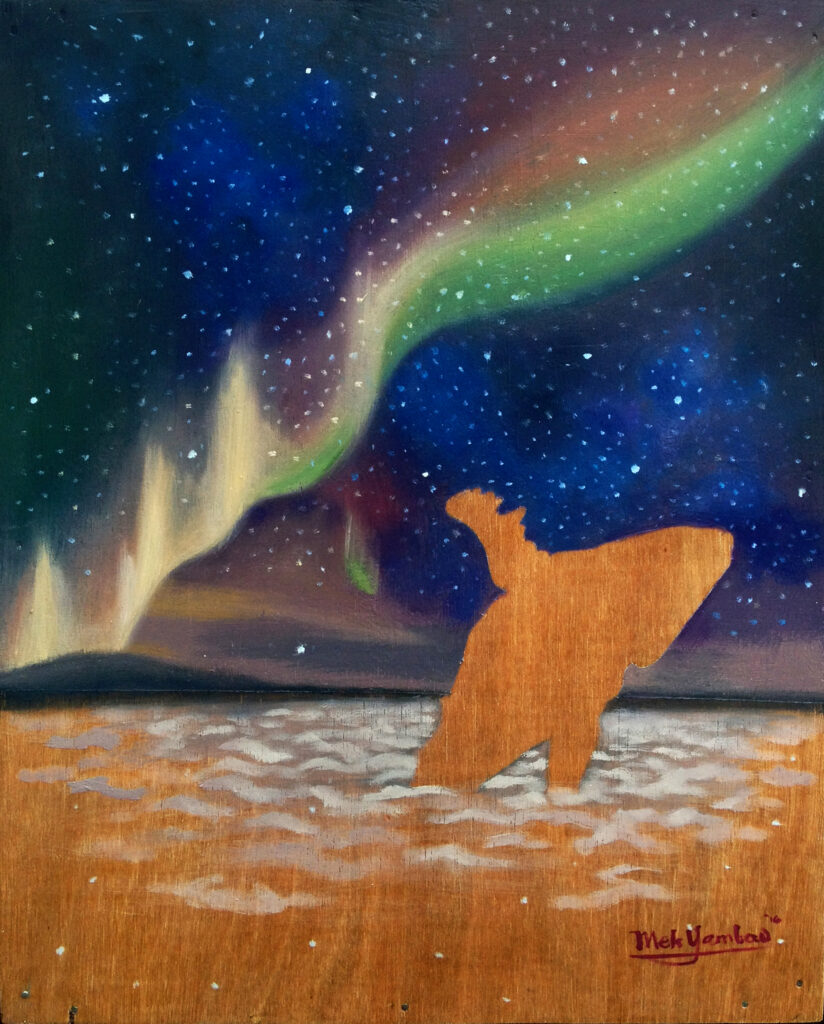 2015-2017, Artworks Series: Cetacea | Aurora Mek 031124 “Cetacea” 50 x 38 cm oil on wood 2016 “Aurora Borealis” 50 x 38 cm oil on wood 2016